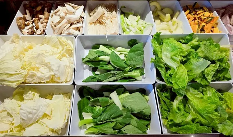 在青菜部分除了基本的高麗菜、還有我愛的青江菜、大陸妹,大陸妹也可以當生菜包肉吃很爽口!火鍋不可或缺的南瓜、大黃瓜、絲瓜以及菇類。