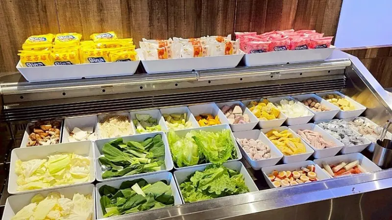 自助吧有時蔬、火鍋料、菇類、王子麵以及粉絲,想吃啥自己夾取,但以不浪費為原則唷!然後一點也不用擔心自助吧食材沒了,因為服務人員會立馬再補上,相當貼心,不怕你吃就怕你吃不下!!