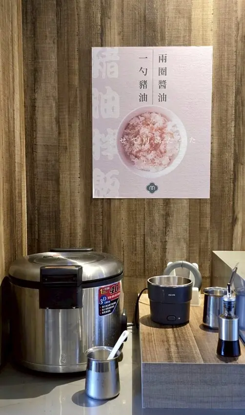 主食的部分除了白飯、豬油拌飯以外,還有提供細粉絲、王子麵。