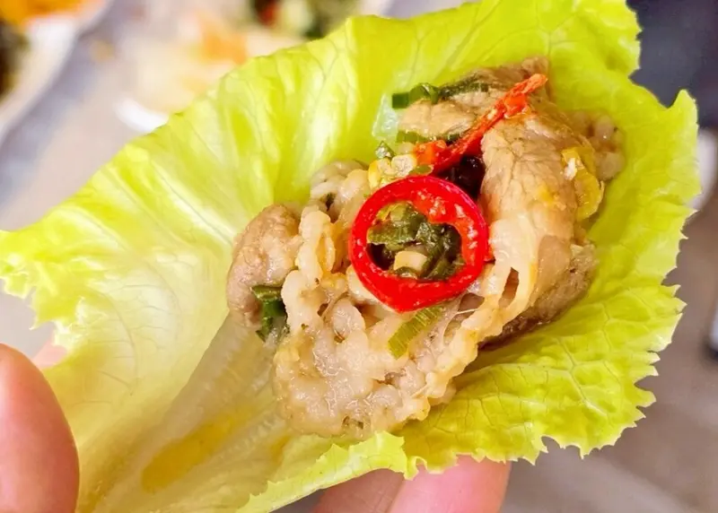 直接拿生菜來包入烤肉吃,不只是解膩也讓口感更為豐富。