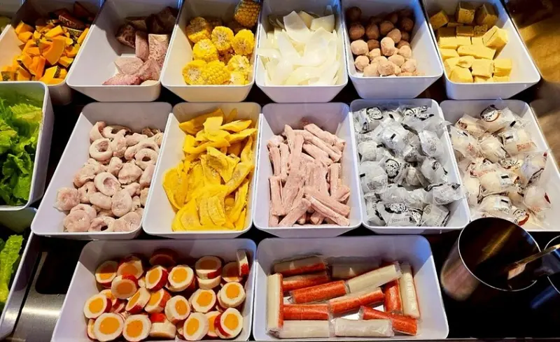 火鍋的好朋友有玉米、芋頭、洋蔥、貢丸、百頁豆腐、蛋餃、魚餃、燕餃、麻糬燒(花生、芝麻)、蟹味棒等,小凉很推美滿家的芋頭,應該是有嚴選過,不只是切的大塊切在火鍋內滾煮後,真的很綿密很好吃。玉米也很甜,洋蔥放入火鍋煮、也讓湯頭更美味,火鍋料就看個人喜歡,我偏愛蛋餃、麻糬燒。