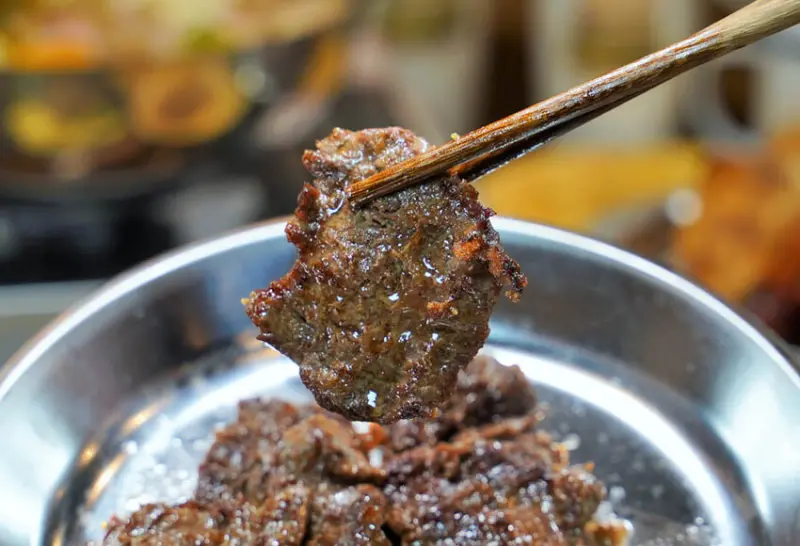 有美國牛肋條,美國霜降翼板牛,美國牛五花,加上特製醬汁跟漢方椒鹽,真的會停不下來