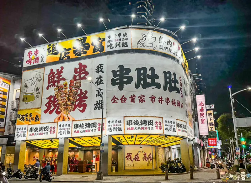 夜幕低垂,華燈初上,高雄博愛路上座明亮的三角窗 串肚肚 串燒吃到飽