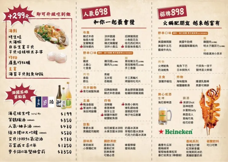 串肚肚價位:人氣 698元、招牌898元、+299元升級吃到飽