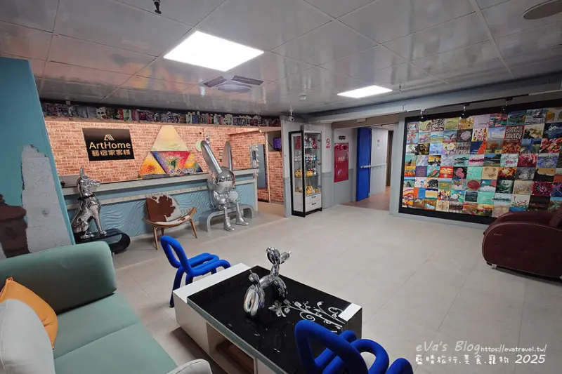 藝宿家客棧ArtHome Hotel是藝術家主題住宿的民宿,隱身在不起眼的舊大樓裡,走進民宿前往2樓有藝廊、書畫房,看到的許多台灣畫家的畫作、雕塑品,充滿著藝術氣息的民宿,來到這裡住宿就是免費參加了一場畫作展覽呀!