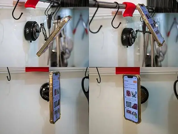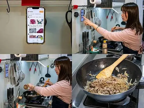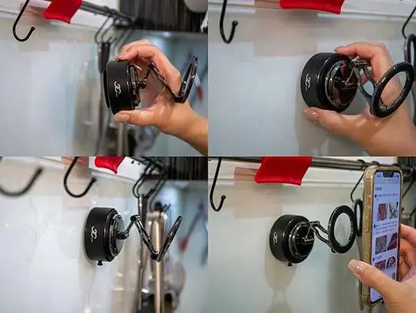 尤其是在有限的檯面,已經沒有地方放手機架,直接吸在牆上,一樣可以架手機!像是一邊看食譜一邊料理,不怕佔用檯面空間,也可以抬頭查閱食譜、影片,超級方便!