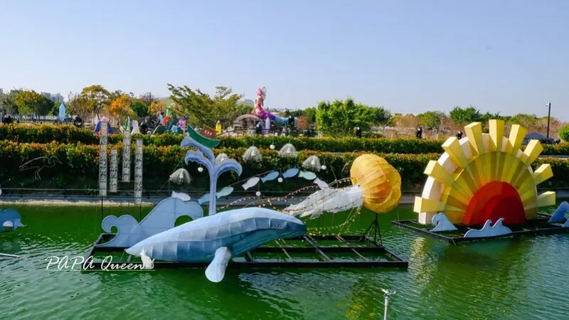 位於主燈對向的城市綠洲燈區,很華麗的水上燈組,透過文字述說臺中山海屯城故事帶著文學氣質