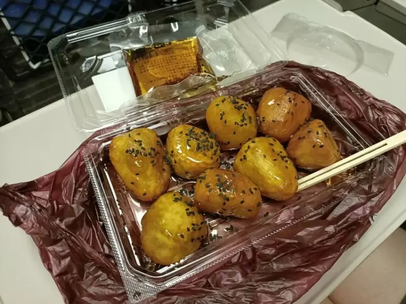 還特意帶了昨天在百貨公司買的拔絲地瓜