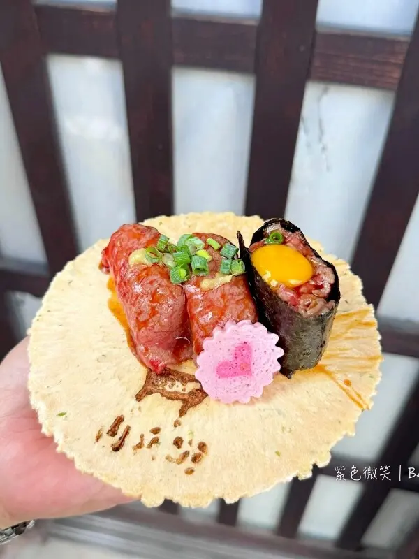 肉片微微炙燒過,油花分布豐富,入口即化,牛肉味道濃郁,最後吃掉仙貝是趣味!