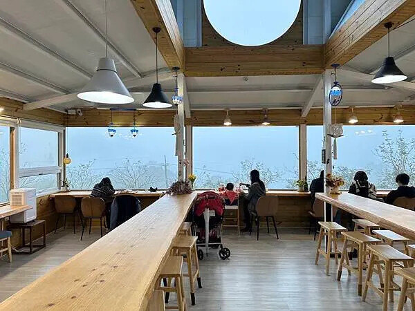 戶外用餐區有吧台式的座位,也有可以坐六個人的桌子,重點是,一抬頭就可以看到美麗的山景。室內用餐區更厲害,有270度的大片窗戶圍繞,坐在窗邊吃飯、喝下午茶,整個超享受。