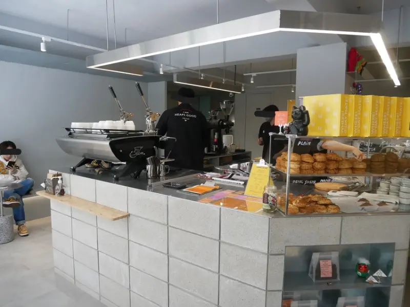 櫃台(右側為司康櫥窗,左側為咖啡機+飲料製作區)