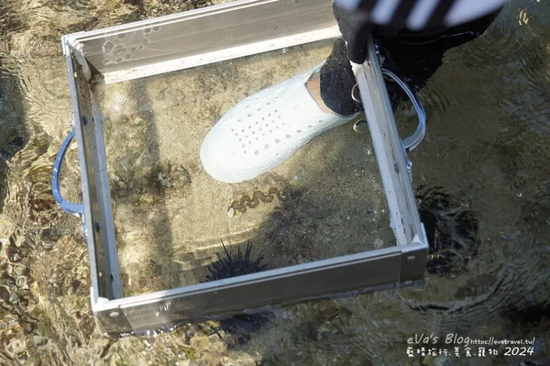 【小琉球景點】蛤板灣有著台版威尼斯沙灘之美稱,海水清澈見底,參與潮間帶活動看見海膽、陽隧足、硨磲貝、海葵、海參等等生物,還可以親手觸摸體驗觸感。小琉球旅行