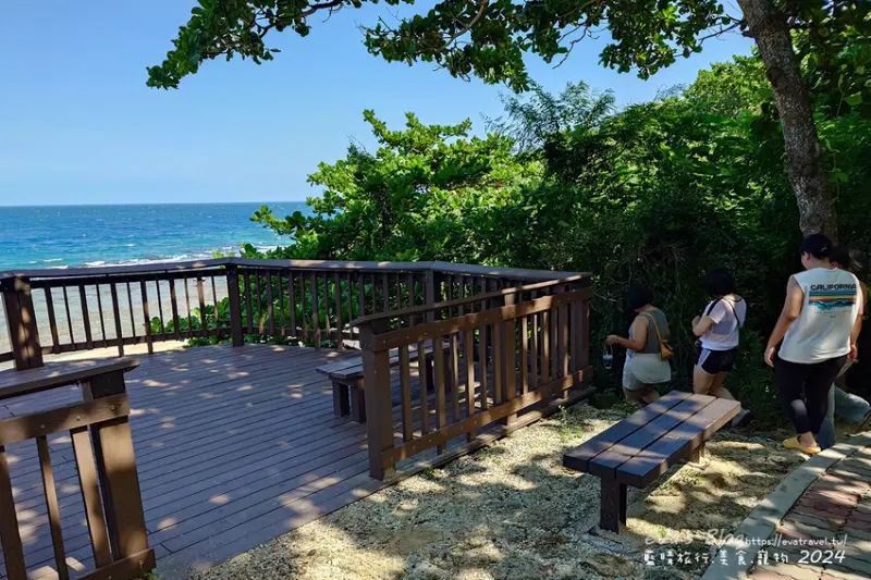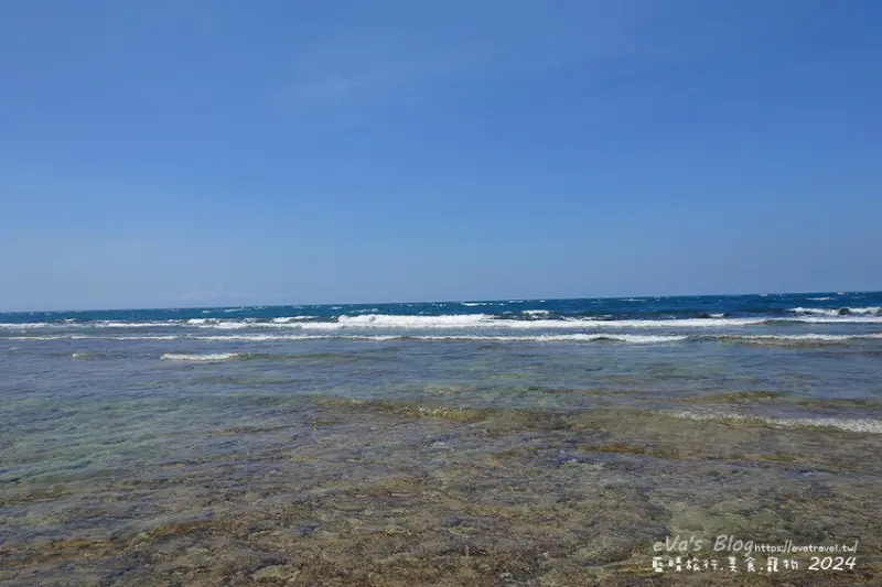 跟著解說員來到蛤板灣,一看到這裡的大海景色有被驚喜到,蛤板灣的海水清澈見底,大海的漸層藍也讓人看了好歡喜,這裡的景色也太美了吧!