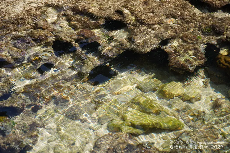在這裡看到非常多的海膽,這密集度看起來有點可怕,記得穿鞋下水喔!不然被刺到應該會蠻痛的,呵