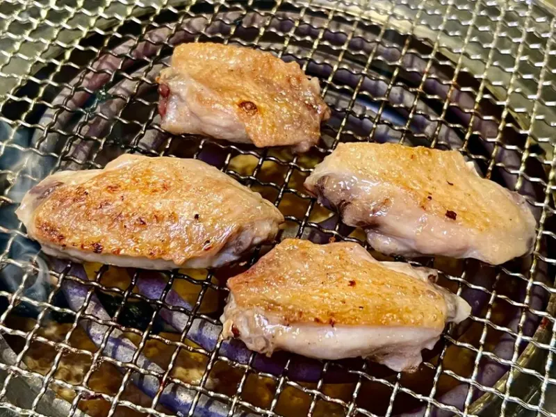 「原味二節翅」經過店家貼心的剪開處理,容易於烤熟,因此外皮烤至焦脆時香氣撲鼻,內部肉質仍能保持嫩滑,並帶有濃厚的雞肉鮮味,原味吃就很美味!