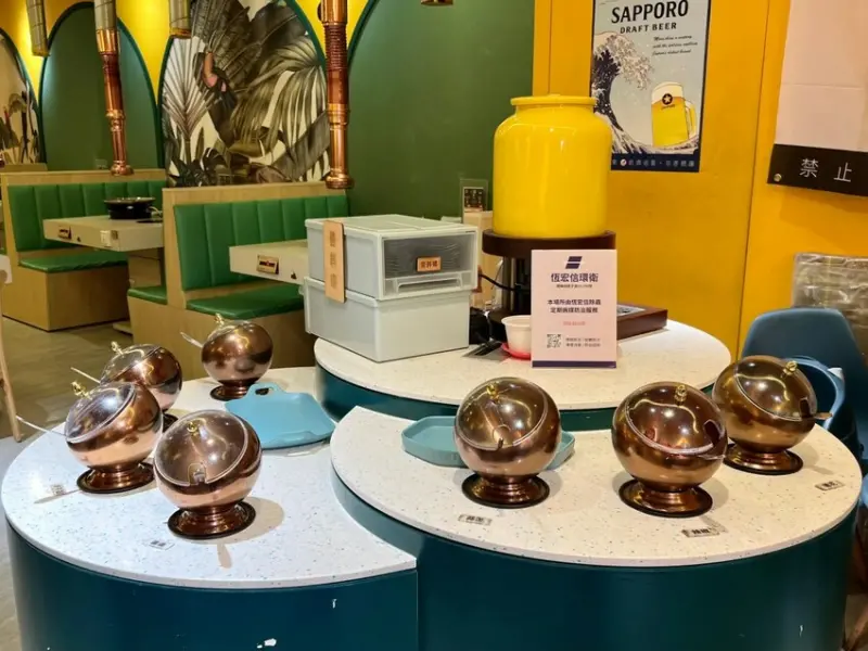 自助吧的設計讓用餐更加便利,白飯、飲料、霜淇淋(有兩種口味可選)無限供應,醬料區則採圓形高台設計,避免取用時過度擁擠。