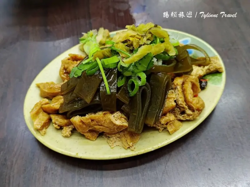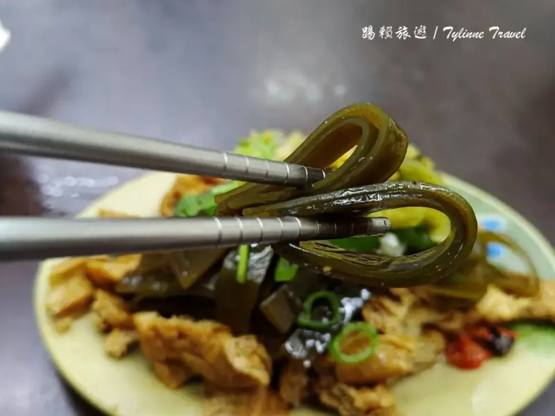 花干看起來鬆鬆的,但吃起來蠻紮實的,我喜歡沾點湯一起吃,就會像豆皮一樣吸飽湯汁更入味。海帶是很經典的滷味小菜,淋點醬油再加點蔥花就很好吃。