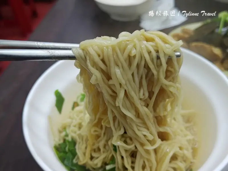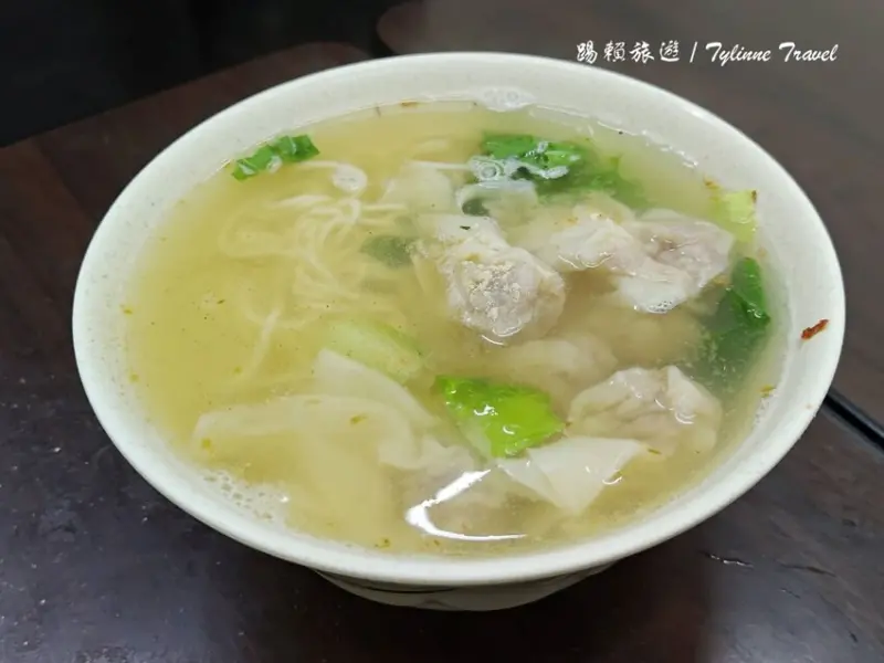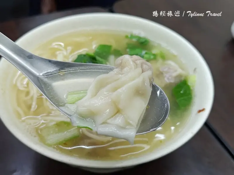 第二碗是「餛飩麵」,湯頭一樣是很清淡,這樣的好處就是你可以依照自己的喜好加調味料。吸一口麵條,可以吃到淡淡的餛飩香氣。湯上面撒了胡椒粉後,把餛飩撈起來沾著吃超夠味,口感滑順,肉香味濃郁。