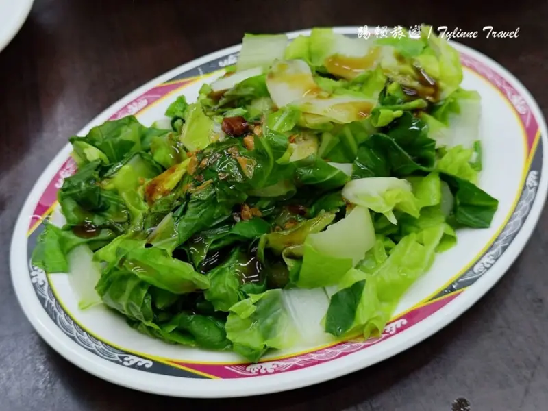 燙青菜我點了菠菜跟小白菜,份量也是多到嚇人。菠菜吃起來比較軟嫩,小白菜比較清脆,可以搭配一點醬料吃更有味道。