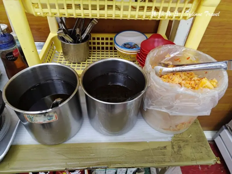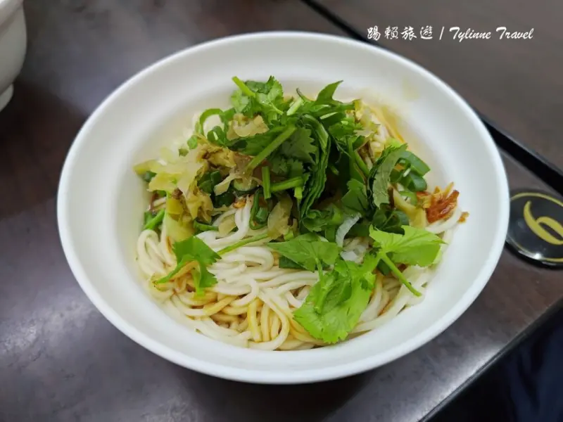 第三碗是「乾意麵」,跟乾麵不一樣的地方就是麵條種類不同。意麵的麵條很細,吸湯汁的速度超快,一端上來攪拌沒多久,底部的湯汁幾乎都被吸光了,吃起來意麵本身的香氣很濃郁,會讓人忍不住一口接一口,一下子就吃光光。![]()