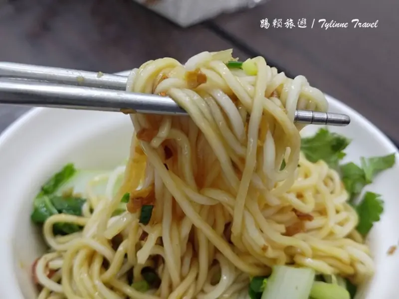 第一碗「乾麵」也是很經典的台灣小吃,我還自己加了滿滿的蔥花跟香菜。把醬汁拌勻後吃一口,就是這個熟悉的古早味!麵條Q彈,完整吸附醬汁,超好吃。![]()