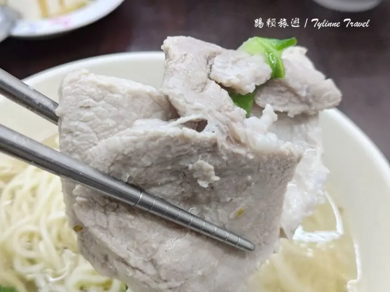 第三碗是「綜合麵第三碗就是我超推的「綜合麵」,裡面的配料有兩大片的「肉片」、Q彈的「貢丸」、飽滿的「餛飩」跟鮮美的「花枝羹」。肉片吃起來很紮實,老闆娘在放進碗裡前還會在表面沾一點特製醬料,吃起來味道更有層次。![]()