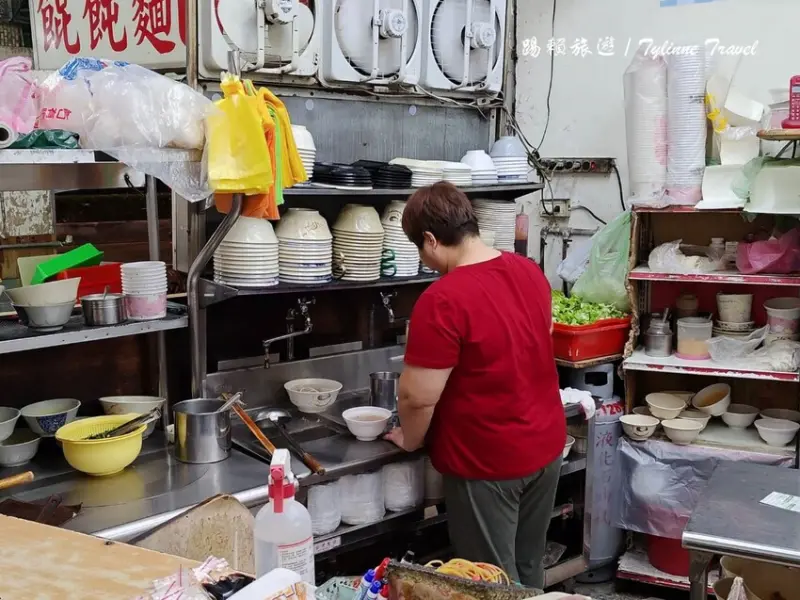 走進店裡,你會看到外面的廚房煮麵區,大部分時間都是老闆娘在負責,尖峰時段也一樣神速出餐,真的很厲害。而且他們家的燙青菜也是直接一大把放下去煮,完全不怕客人吃。