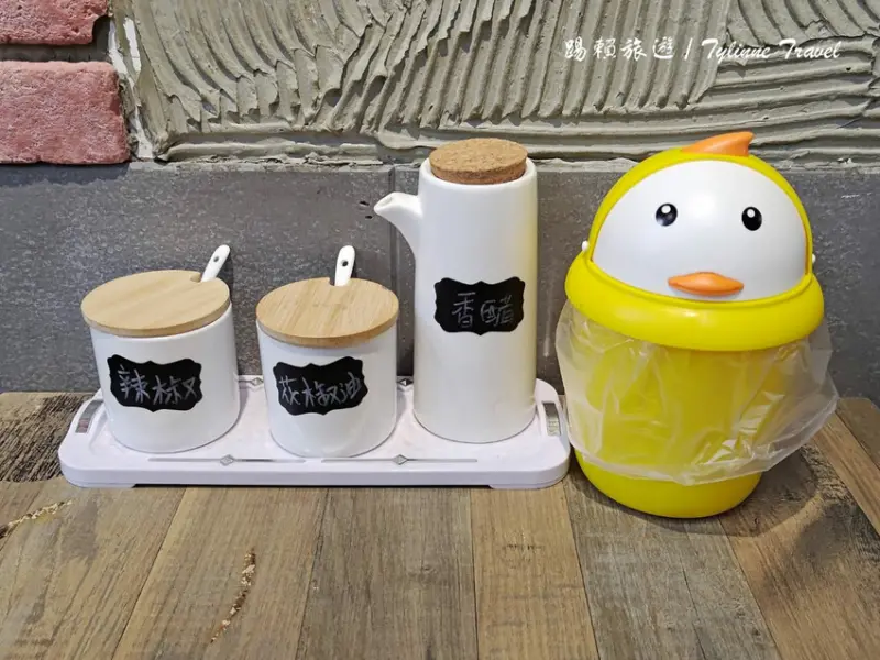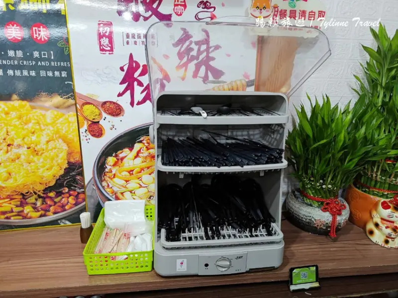 餐具是自助式的,放在店內最裡面的桌子上。 吃飽之後餐具也要自己回收喔,尤其是在用餐尖峰時間,這樣可以減少老闆娘的負擔,大家就乖乖自己動手一下吧!