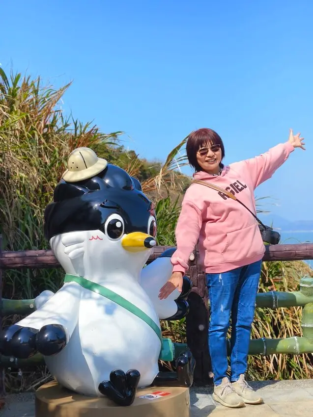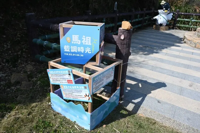 南竿秋桂山海岸景觀區吉祥物是「歐霸」,來這裡拍大自然景觀,與歐霸拍照打卡,還可以兌換專屬紀念品。