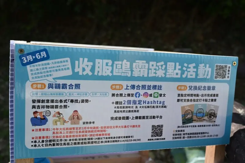 收服鷗霸踩點活動不只要拍照打卡,還要帶上身分證,本人七日前往馬祖的機票或船票,才可以兌換喔。
