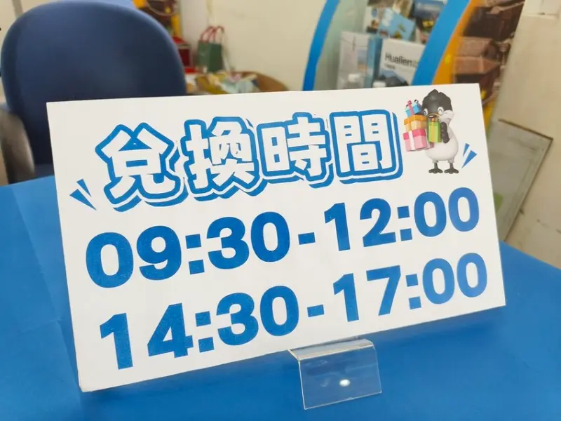 兌換時間是週一至週日 09:30~12:00、14:30~17:00。