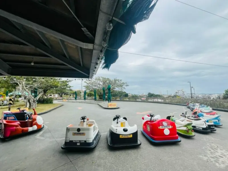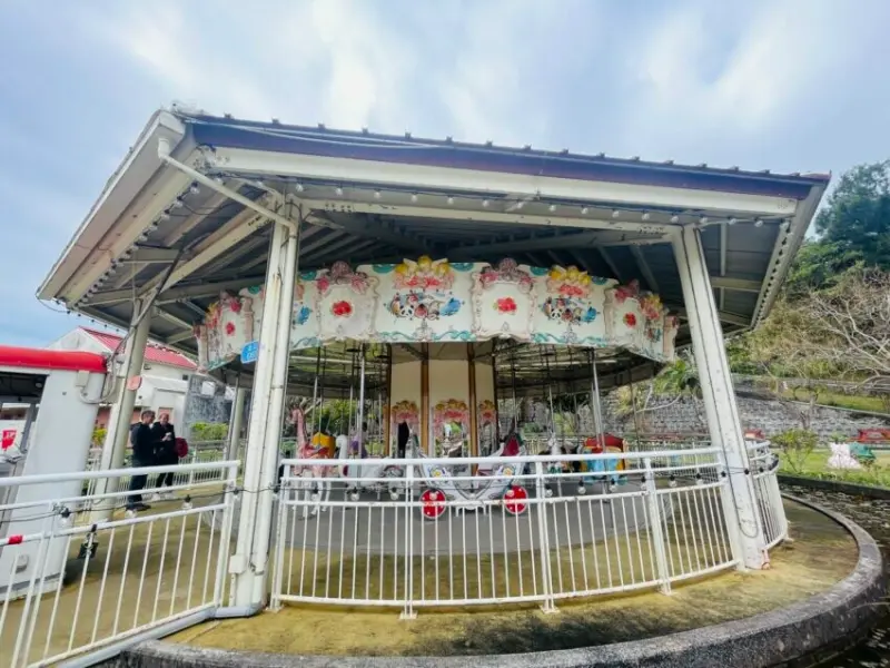 來到沖繩兒童王國的遊樂園區,這裡主要有旋轉木馬、小火車體驗、開迷你車這3項設施與體驗,其中旋轉木馬、小火車需要透過機台付費購買票券,價格是200日元,迷你車則是投幣100日元即可開玩,爸媽們可以參考一下~