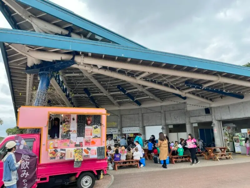 除了海族工房以外,沖繩兒童王國入口進來右手邊的半開放空間也有餐飲店、餐車可以購買餐點,也提供座位可以在這裡休息用餐。餐點選擇有熱狗堡、飯糰、章魚燒、沖繩麵、咖哩飯等常見小吃,還有在沖繩幾乎無所不在的超夯冰淇淋Blue Seal也有販售~想要快速祭拜五臟廟,在Welcome飲食店解決午餐也是不錯的選擇。