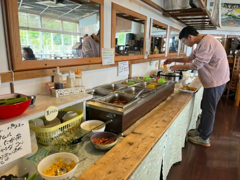 海族工房提供自助餐buffet料理,品項很豐富,包含沙拉、唐揚雞、豬腳、炒飯、咖哩飯、味增湯、粥品等,甜點還有奶酪、紅豆湯、磅蛋糕可以吃,餐點很美味以外,成人1500日元可以吃到這麼多品項,小編覺得CP值超高!老闆娘英文很好也很友善,來海族工房用餐保證不會踩雷~
