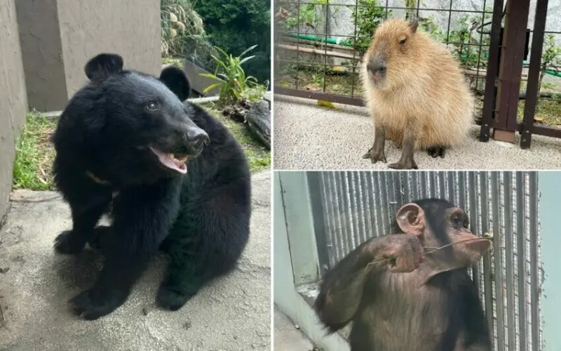 超人氣的明星動物水豚君!還有這隻很逗趣的猴子,看起來非常愜意~
