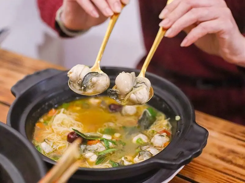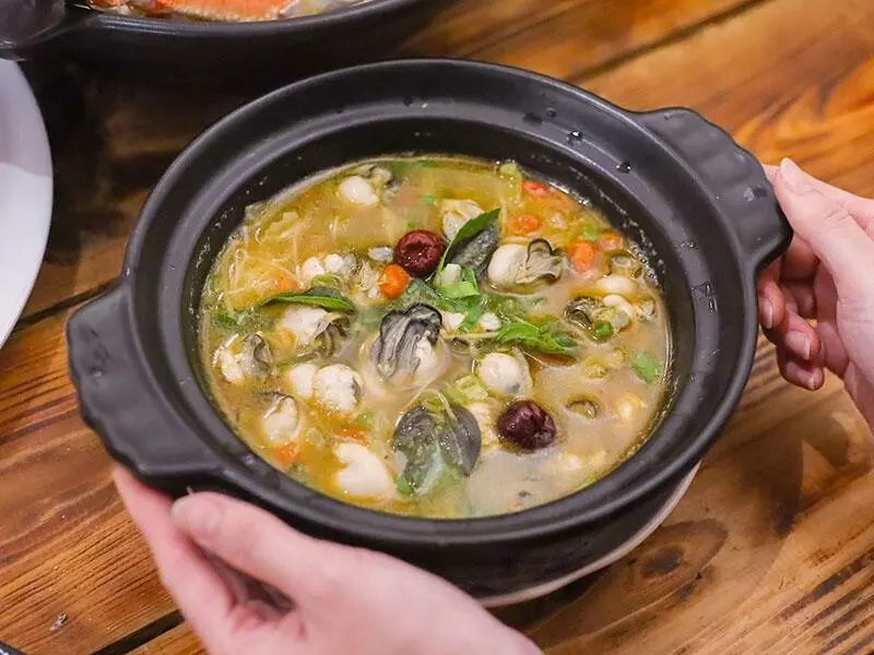 這道麻油牡蠣裡面有著漁民古早味的記憶,是很滋補養生的聖品。麻油的香氣超級濃郁,還加了老薑、紅棗、枸杞這些料,喝下去整個胃都暖了起來,而且還帶有一種獨特的甘甜味。裡面的牡蠣又肥又滑順,沒想到裡面還加了麵線,吃完整個人都暖呼呼的。