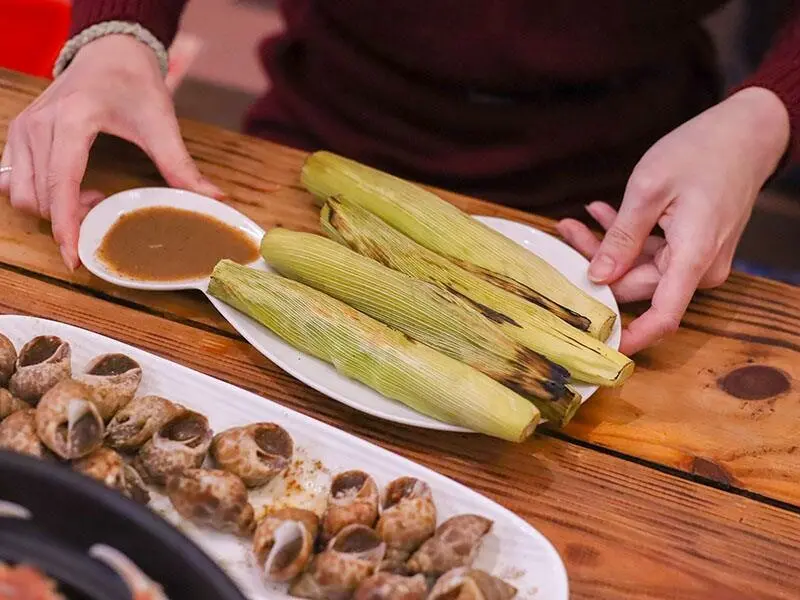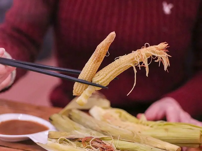 他們的小農玉米筍吃起來鮮甜又脆口,搭配店家特製的胡麻沾醬,味道很特別喔。