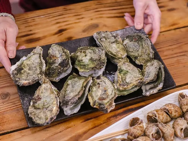 這個比手掌還要大的大生蠔,光看就覺得很震撼!他們用的生蠔都是當天最新鮮的(產地包含美國、日本、歐洲),這麼大一顆兩個人分著吃都很夠,而且鮮味十足。有火烤、焗烤和生吃三種吃法可以選,火烤的會搭配店家特製的芥末果醋醬,那個微酸的風味更能襯托出生蠔的鮮甜,帶來很不一樣的口感體驗。如果你是第一次吃,建議可以先試試看焗烤的喔!
