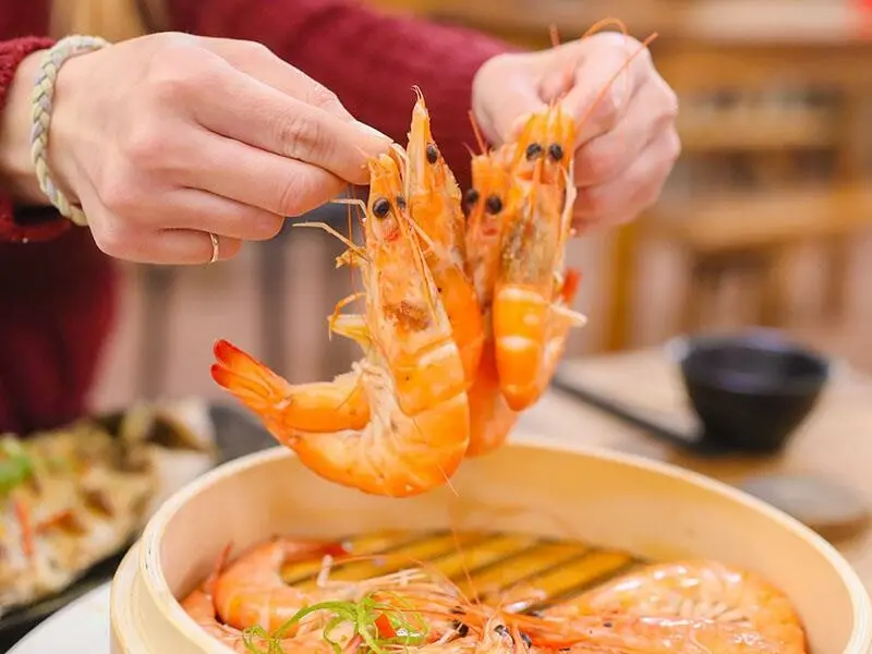 他們家的野生蝦個頭都很大,而且這樣一份的份量超級多!兩個人吃絕對可以吃得很過癮!蝦殼很薄,裡面的肉很厚實又帶有彈性,蝦肉的新鮮度從它的色澤就可以看得出來,簡單沾點芥末就很好吃了。