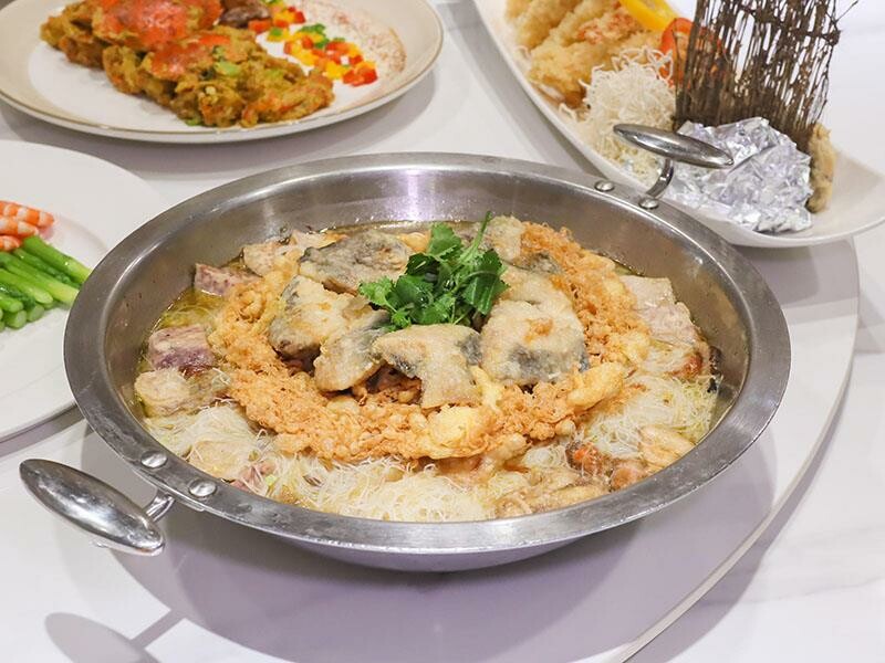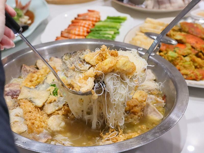 冷冷的天氣來一鍋芋香鯧魚米粉鍋最適合了!現在鯧魚可是不便宜耶!這鍋是用鯧魚、中卷跟芋頭一起熬煮的,還加了超多蛋酥來提味,湯頭喝起來濃郁又帶點淡淡的芋頭香氣,米粉吸飽了湯汁,每一口都暖心暖胃,而且這一鍋的份量真的很大,夠讓全家人一起享用這鮮甜的海鮮湯頭。