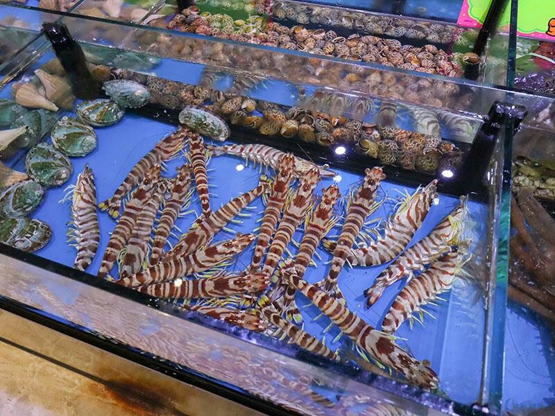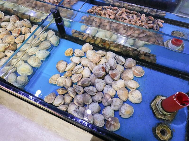 一走進一樓,就可以看到一整排超大的水族箱,裡面的海鮮每隻都活跳跳的,看起來就像一個小小的水族館一樣,帶小朋友來光是逛這些魚蝦貝類,他們應該就會超開心了吧!一樓有開放式的座位區,我們今天吃飯的包廂也是在一樓喔。
