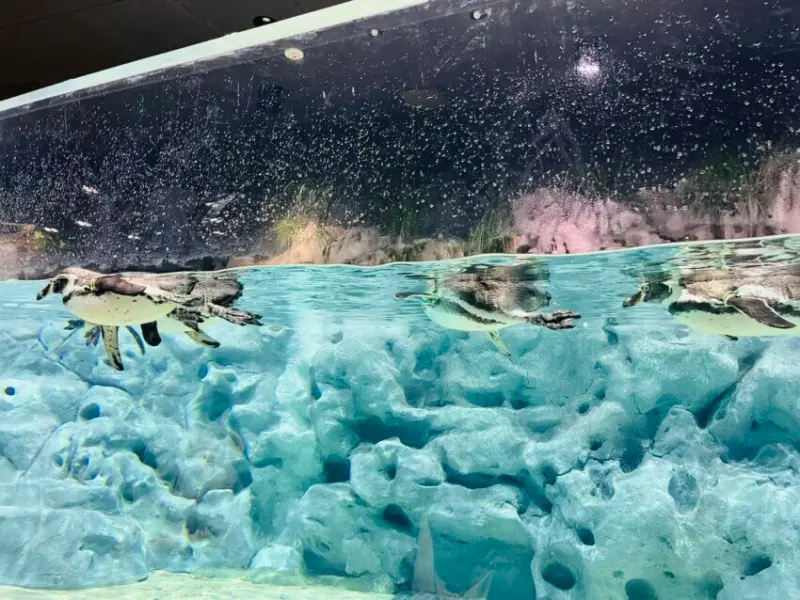 DMM 水族館展示了幾種不同品種的企鵝,包括皇帝企鵝和小藍企鵝等。這些企鵝在水族館內的環境中生活,模擬了自然界的栖息地,更規劃了特別的互動區,讓你可以直接觀察企鵝在水中游泳、休息和互動的情況。