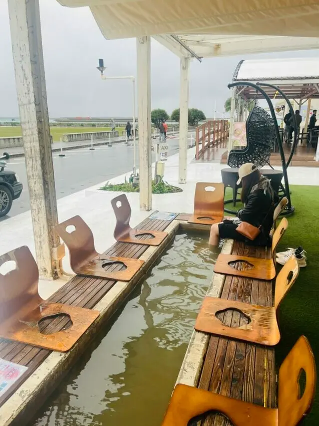 在瀨長島47STORE購物時,還能順便體驗免費的足湯(泡腳池),使用的是瀨長島的天然溫泉「龍神之湯」,能促進血液循環、消除疲勞。