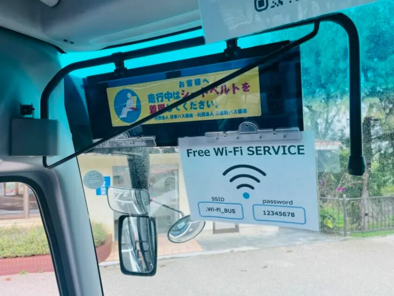沖繩FunPASS觀光巴士配有免費的WIFI,是不是很窩心!讓你搭乘時不無聊也不用擔心流量有限的問題!設定完成,上下車都會自動連線,好方便!