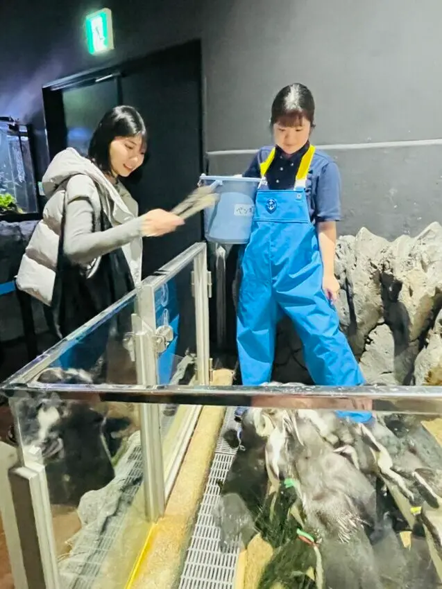 當天我們幸運體驗了企鵝餵食!看見企鵝們爭先恐後地前來討食物,過程中還會不小心滑掉,變成保齡球連環倒的搞笑畫面,超級逗趣的!