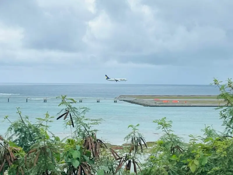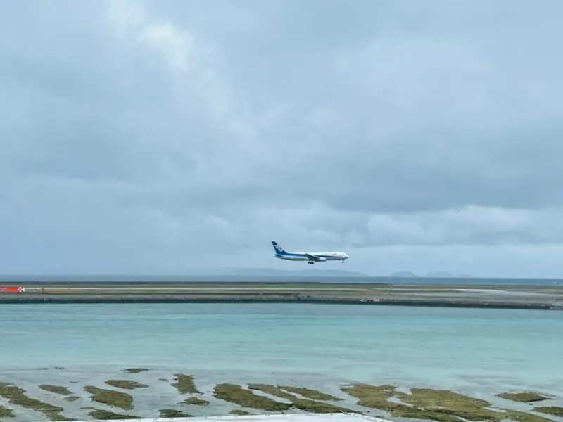 沖繩FunPASS觀光巴士會在瀨長島展望台附近下車,走上展望台約5分鐘時間,全程都是階梯,還算輕鬆。展望台是瀨長島觀看飛機低空降落的最佳地點之一,飛機一台接一台呼嘯而過,場面超震撼!