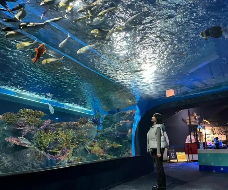 海洋生物大水池是水族館內的主要展示區域,也是必拍的景點!這個大型水池展示了多種海洋生物,並提供了豐富的海洋生態觀察體驗。