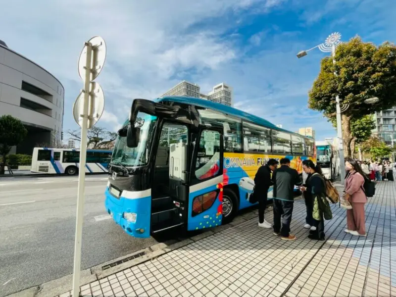 是採用大巴士負責接駁旅客,車體蠻新的又乾淨,乘坐起來也舒服的,即使坐了一個多小時的車程也是睡得很安穩。而且外觀有超可愛的Okinawa FunPASS專屬彩繪,非常好辨認,完全不用怕找不到車。