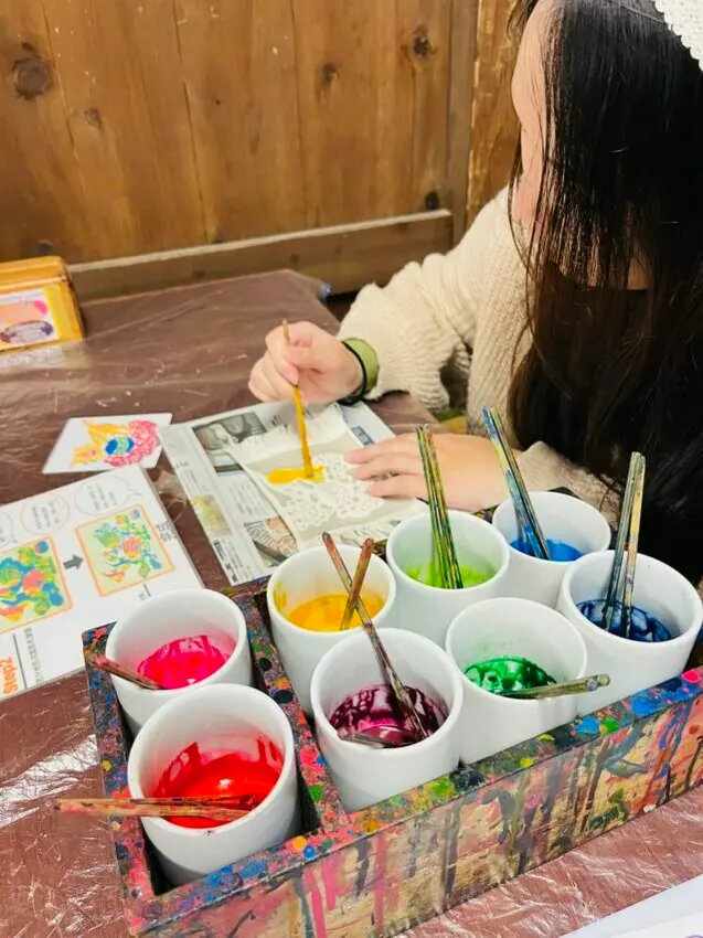 好玩編們當天在紅型工房體驗了紅型染,透過特有的顏料,彩繪沖繩守護神「沖繩獅」在畫布(杯墊)上