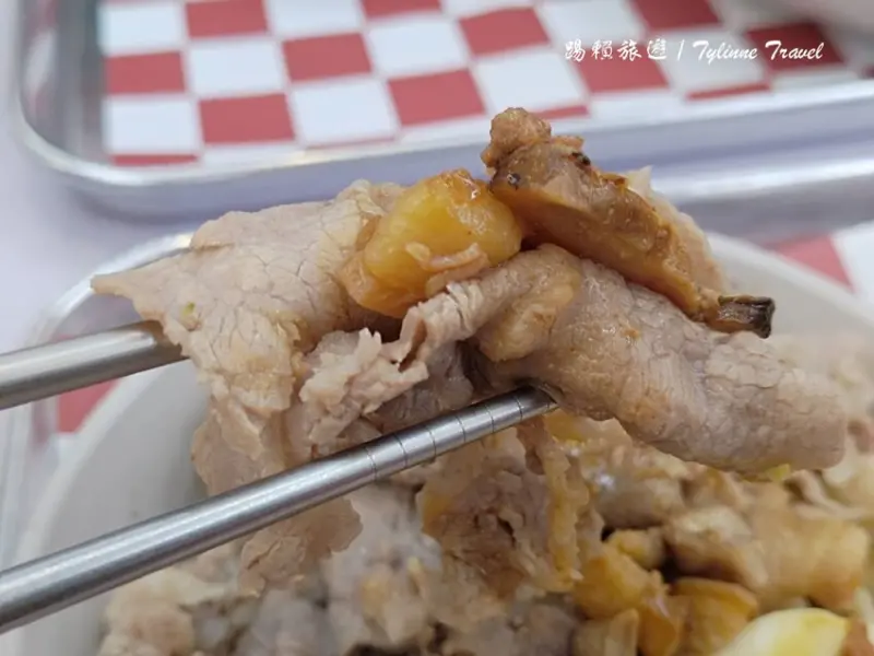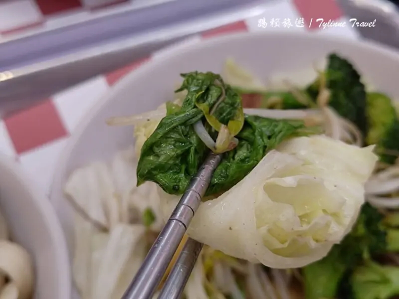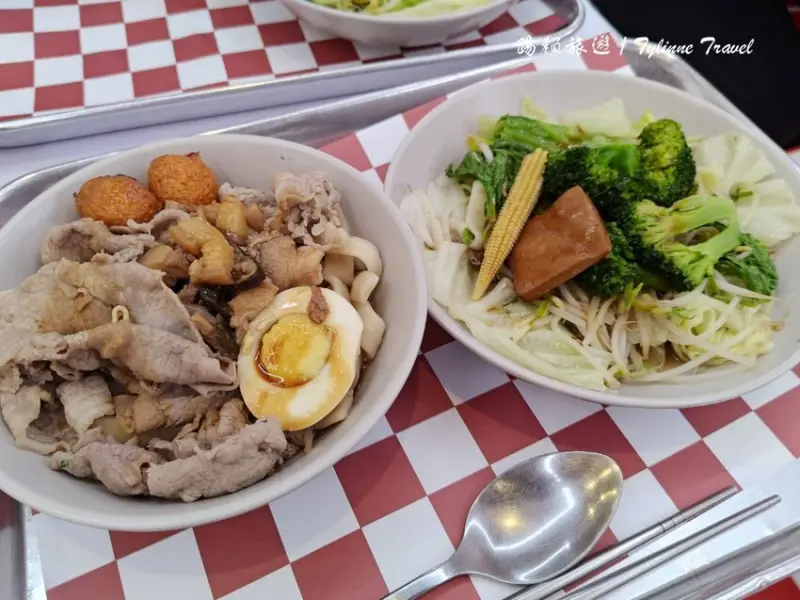 豆芽菜和高麗菜吃起來爽脆多汁,相比主餐滷汁香濃的味道蔬菜吃起來相對清淡清爽,交換吃可以轉換口我也比較不會感到太油膩